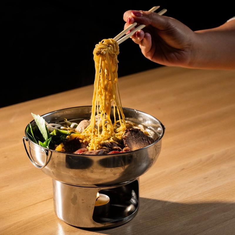 Hot Pot $18.95| 2 Person $24.95 • Combination of stewed beef, sliced beef, and beef meatball in Thai herb broth served with liver, intestine, bean sprouts, and morning glory.