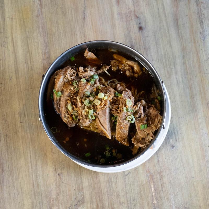 Duck Noodle soup with Homemade Duck broth, Morning Glory and Bean Sprout